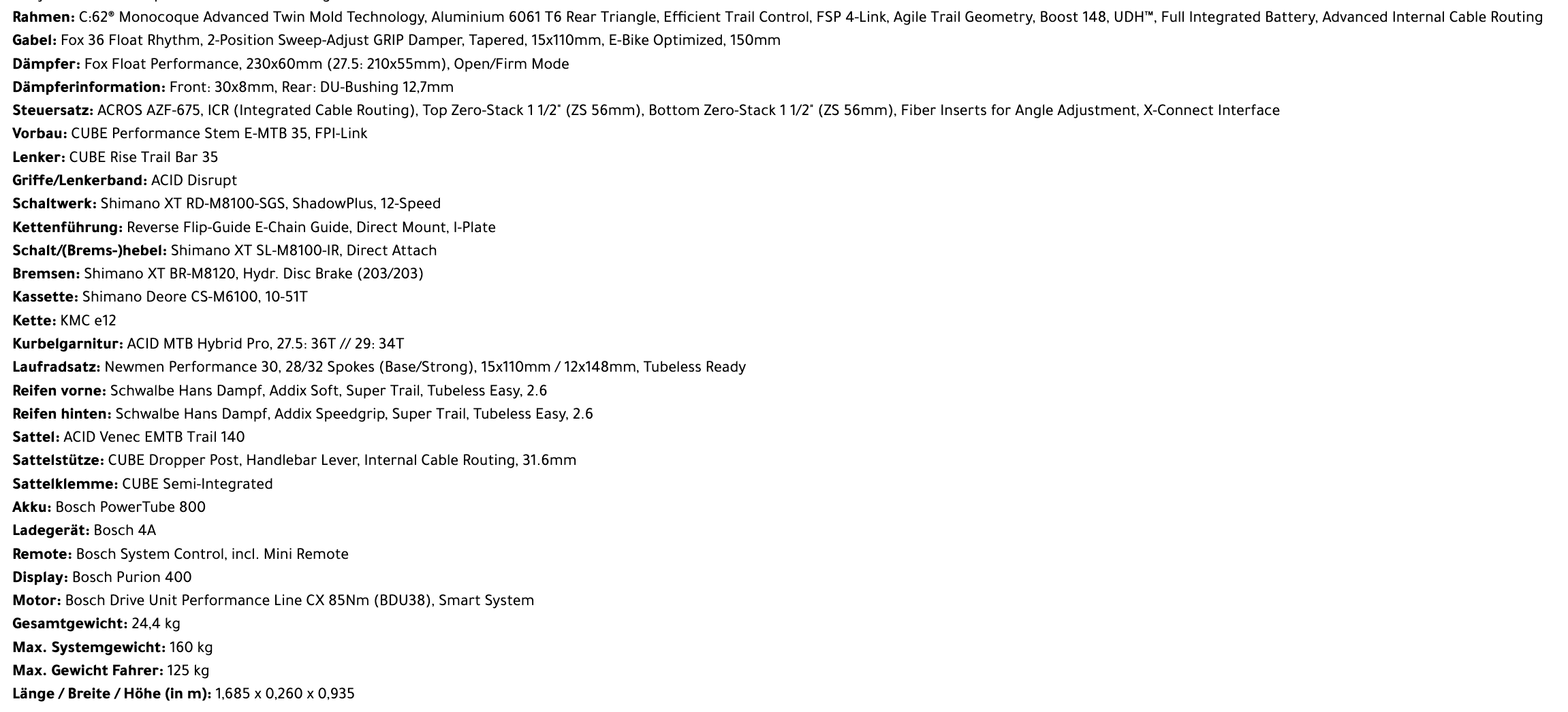 Wer das Cube Stereo Hybrid One44 HPC SLX in Erwägung zieht, der sollte vor der Bestellung natürlich einen genaueren Blick auf die Ausstattung des E-MTBs werfen. Mit dem Carbonrahmen, einer Fox 36 Float Rhythm mit 150mm Federweg sowie dem passenden Fox Float Performance Dämpfer dürften beispielsweise auch etwas anspruchsvollere Mountainbiker zufrieden sein, gleiches gilt wahrscheinlich für die Shimano XT Schaltung mit 12 Gängen.