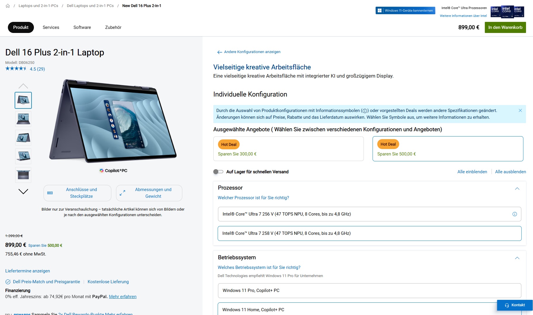 Dell hält mit der 16-Plus-2-in-1-Reihe eine Serie von potenten, gut ausgestatteten Windows-Convertibles bereit. Die Serie folgt auf Dells Inspiron-16-2-in-1-Reihe. Aktuell führt der Dell Store das Top-Modell der 16-Plus-Reihe zu einem Angebotspreis von 899 Euro im Sortiment. Der Rechner ergatterte in unserem Test aus dem Sommer 2025 die Bewertung "Gut (84 %)".