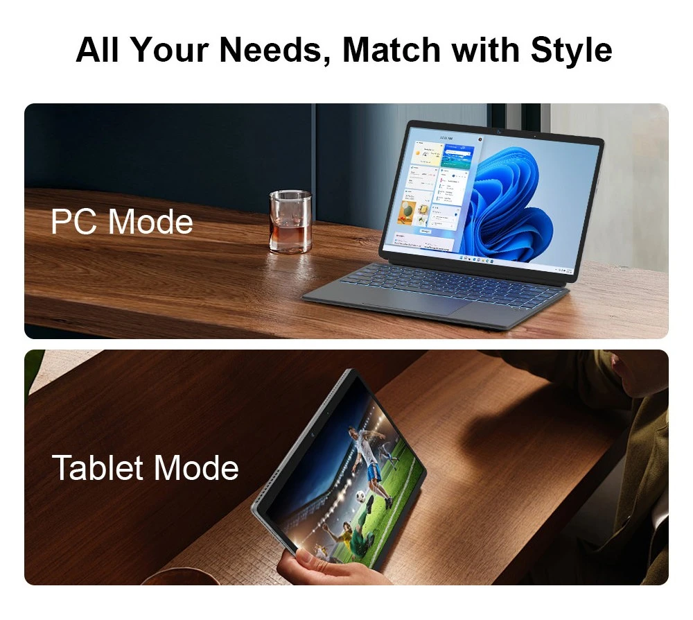 Der Ninkear T40 ist ein 2-in-1 Tablet-PC. Er vereint ein Tablet und ein Notebook in nur einem Gerät. Möglich machen dies zum einen Windows 11 als Betriebssystem und zum anderen die abnehmbare Tastatur, die am Tablet anhaftet. So ist nach Belieben ein Wechsel zwischen Laptop- und Tablet-Modus möglich.