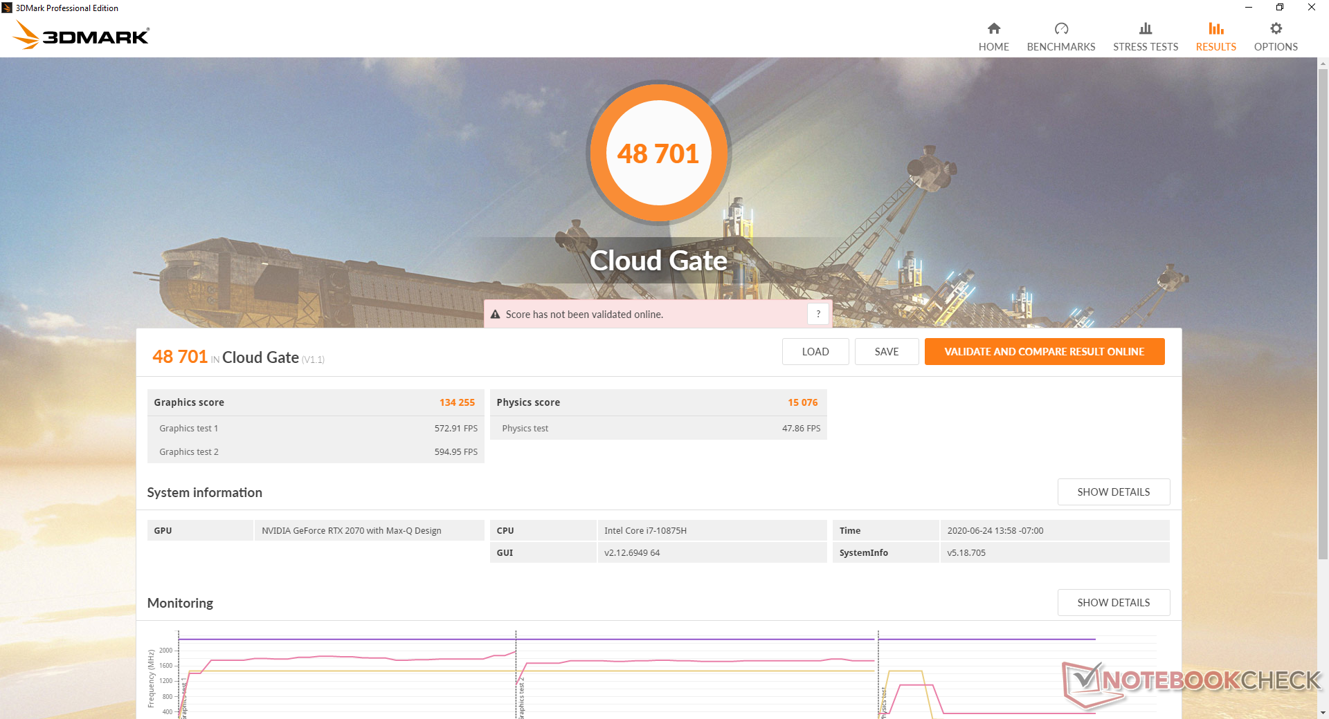 | 3DMark Cloud Gate Standard Score | 48701 Punkte | |
