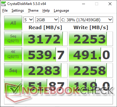 | Razer Blade Pro 17 RTX 2070 Max-Q 300 Hz GeForce RTX 2070 Max-Q, i7-10875H, Lite-On CA5-8D512 | Asus ROG Zephyrus S GX701GXR GeForce RTX 2080 Max-Q, i7-9750H, Samsung SSD PM981 MZVLB1T0HALR | MSI GS75 Stealth 9SG GeForce RTX 2080 Max-Q, i7-9750H, 2x Samsung SSD PM981 MZVLB1T0HALR (RAID 0) | Alienware m17 R2 P41E GeForce RTX 2080 Max-Q, i9-9980HK, 2x SK Hynix PC601 NVMe 512 GB (RAID 0) | Aorus 17G XB GeForce RTX 2070 Super Max-Q, i7-10875H, Samsung SSD PM981a MZVLB512HBJQ | Razer Blade Pro 17 RTX 2080 Max-Q GeForce RTX 2080 Max-Q, i7-9750H, Samsung SSD PM981 MZVLB512HAJQ | |