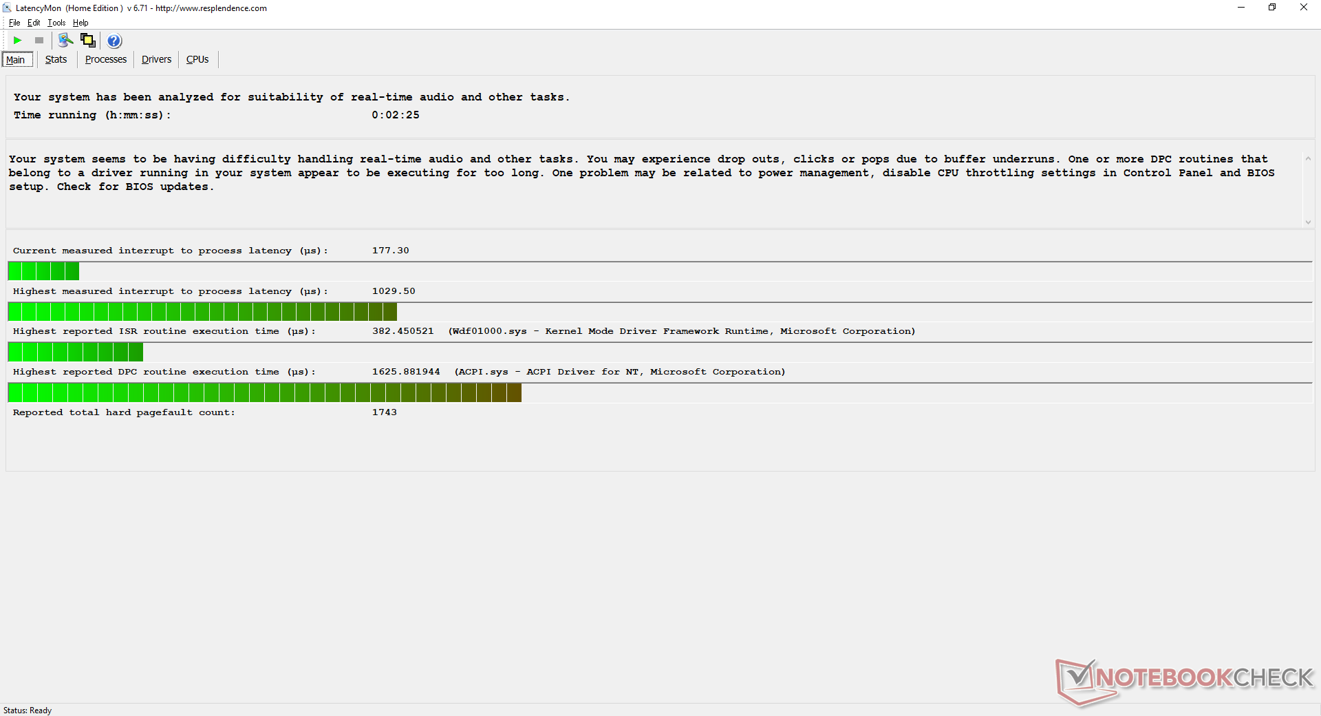 Der Akkubetrieb schränkt die Leistung ein. Hier ergibt ein Fire-Strike-Durchgang Physics- und Graphics-Ergebnisse von 10.831 bzw. 10.128 Punkten, während im Netzbetrieb 20.414 bzw. 21.191 Punkte erreicht werden.