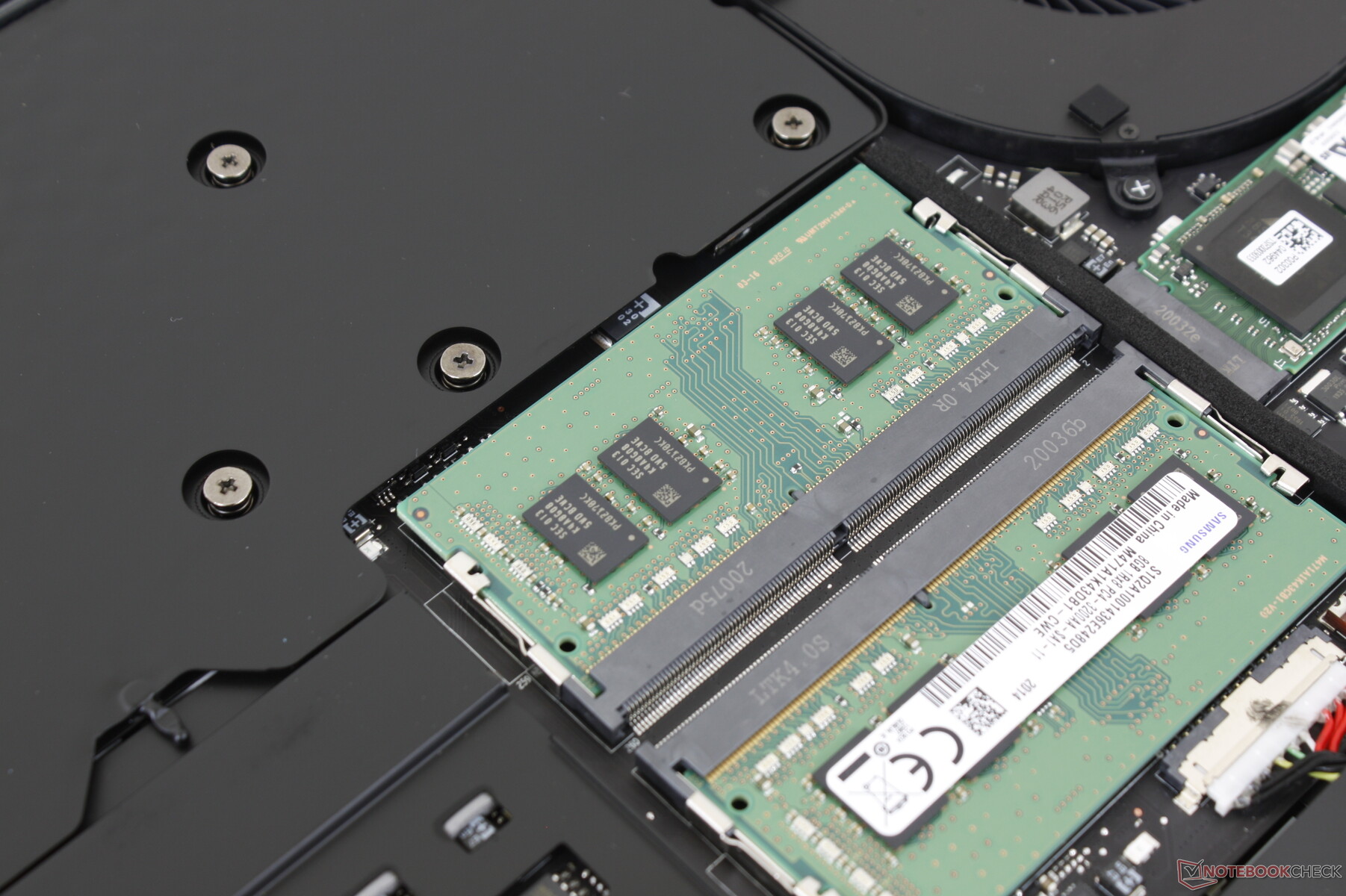 Das RAM-Modul wurde von DDR4-2667 auf DDR4-2933 aufgerüstet. Die zwei zugänglichen SODIMM-Slots ermöglichen bis zu 64 GB.