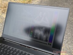 Die Sichtbarkeit im Freien ist nicht deutlich besser oder schlechter als auf einem 2019er-Modell bzw. einem anderen herkömmlichen Gaming-Laptop. 300 cd/m² reichen nicht aus, um helles Umgebungslicht zu kompensieren - auch ohne mattem Overlay.