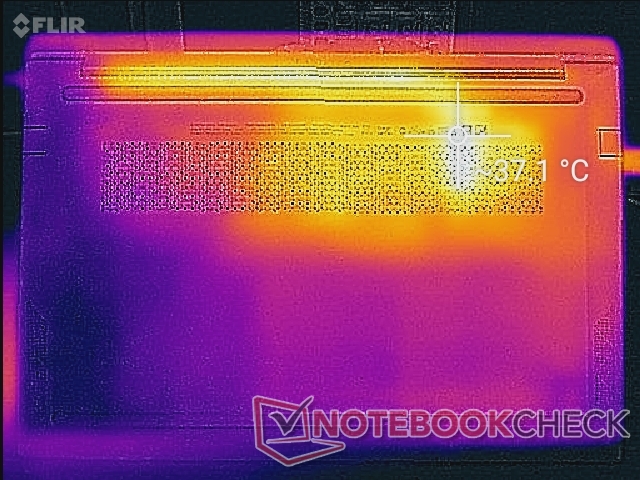 (+) Die maximale Temperatur auf der Oberseite ist 37.6 °C. Im Vergleich liegt der Klassendurchschnitt bei 35.9 °C (von 21.4 bis 59 °C für die Klasse Subnotebook).