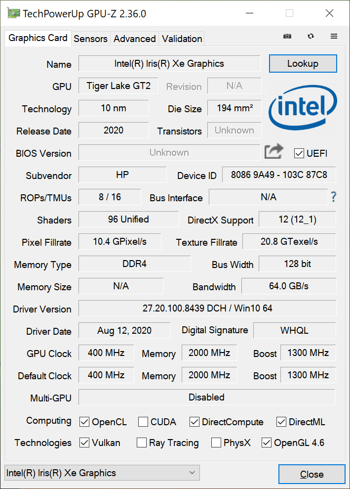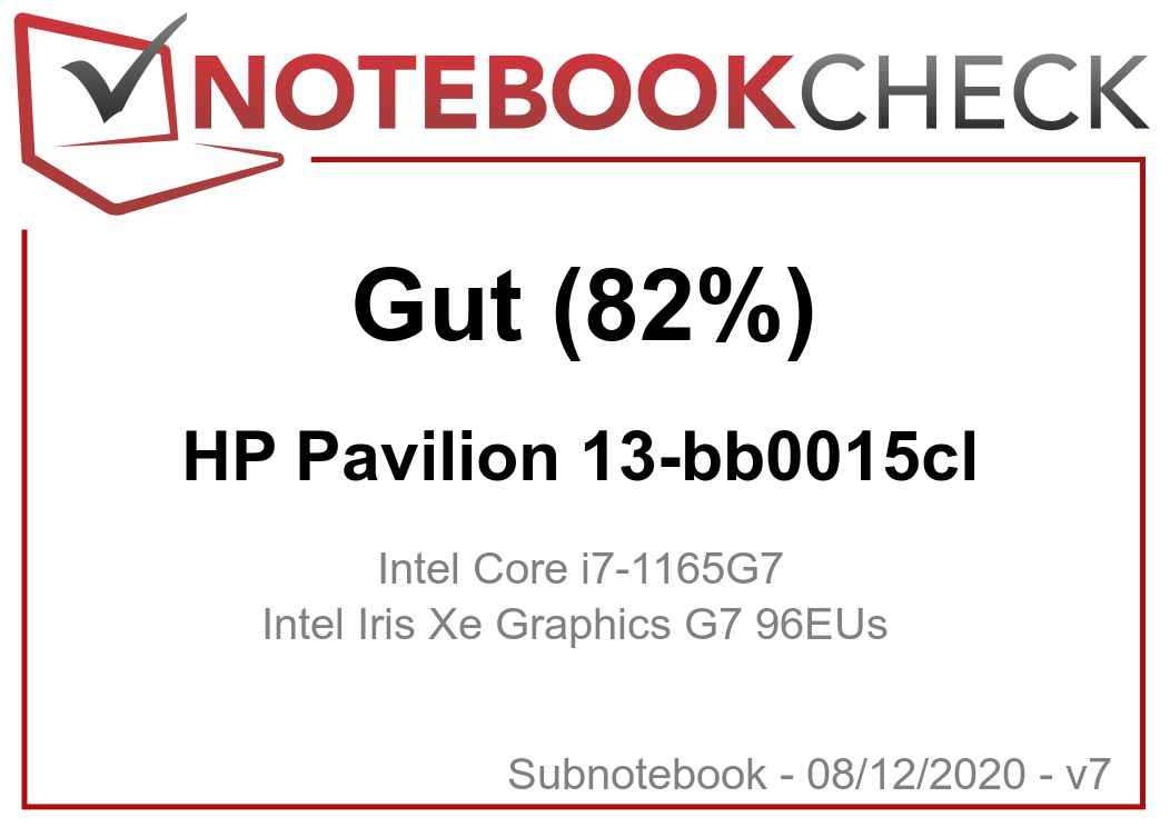 | 81.5 % v7 (old) | 12 / 2020 | HP Pavilion 13-bb0015cl i7-1165G7, Iris Xe G7 96EUs | 1.2 kg | 17.7 mm | 13.30" | 3840x2160 | |