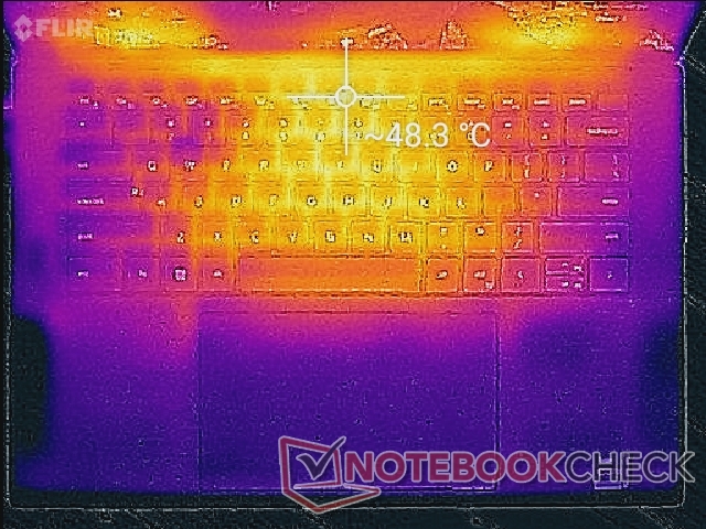 (+) Die Handballen und der Touchpad-Bereich sind mit gemessenen 31.6 °C kühler als die typische Hauttemperatur und fühlen sich dadurch kühl an.