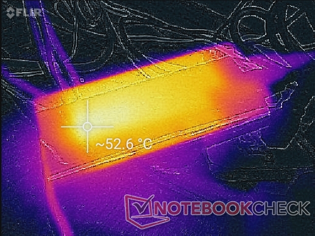 (-) Auf der Unterseite messen wir eine maximalen Wert von 51 °C (im Vergleich zum Durchschnitt von 39.1 °C).