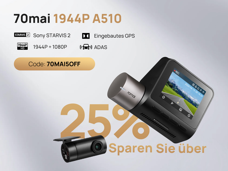 Noch günstiger erhältlich ist die 70mai A510. Auch diese Dash Cam besteht aus zwei Kameras für vorne und hinten, kostet laut unverbindlicher Preisempfehlung aber nur 159,99 Euro. Zum Black Friday lassen sich auch hier satte 25 Prozent sparen, sodass sich ein Dealpreis von nur 119,99 Euro ergibt.