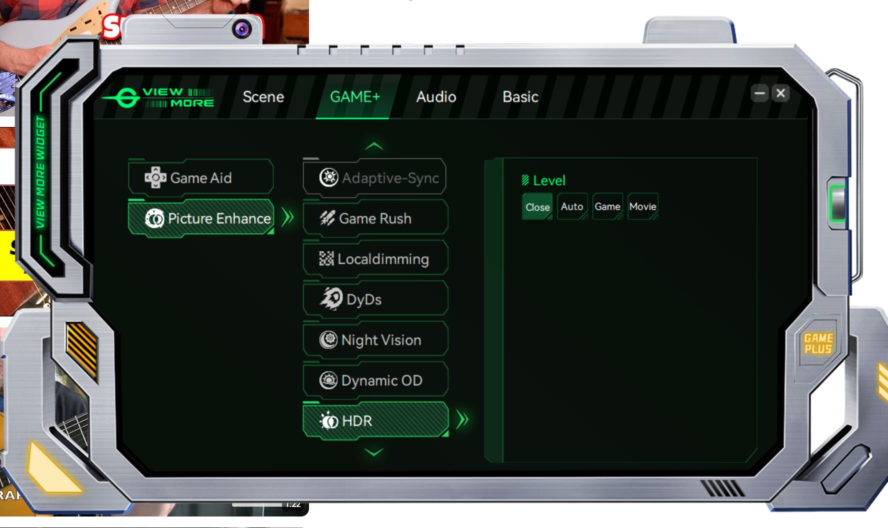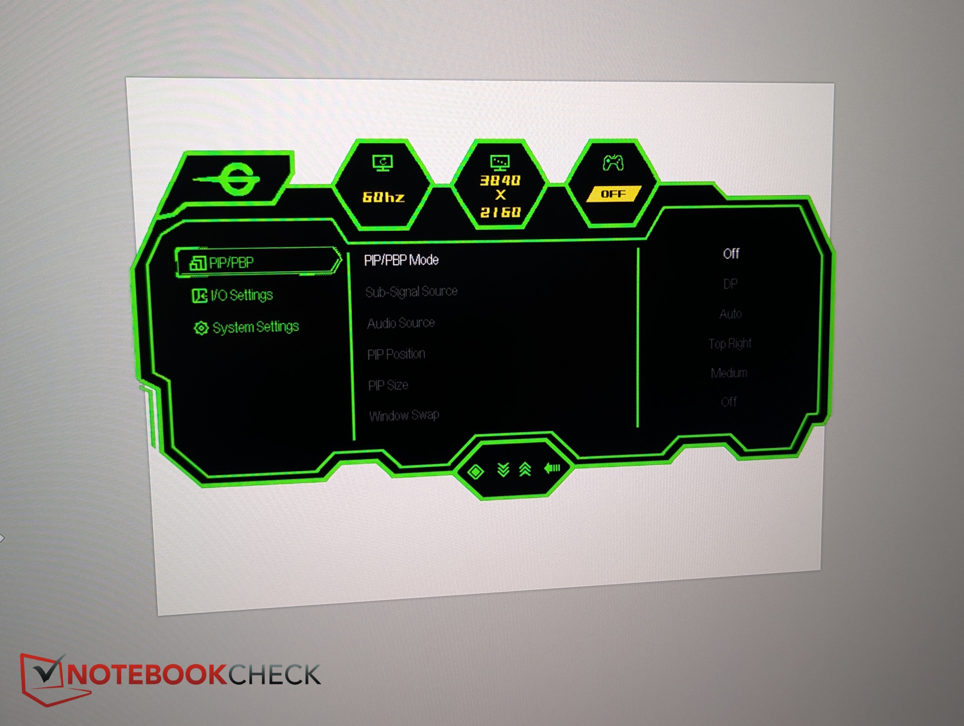 Im Menü gibt es zudem 15 Bildmodi. Einerseits sind hier Profile für sRGB, DCI-P3 und AdobeRGB hinterlegt, andererseits aber auch Gaming-spezifische Bildmodi wie RTS/RPG Mode (Helligkeit der mittleren Grautöne wird angehoben, um schnell Kartenveränderungen mitzubekommen), FPS Mode (Helligkeit der mittleren Grautäne sowie darunter erhalten einen Bosst, was beim Aufspüren von Gegnern in schattigen Bereichen helfen soll), MOBA Mode (erhöht allgemeine Kontraste für eine bessere Immersion) usw.
