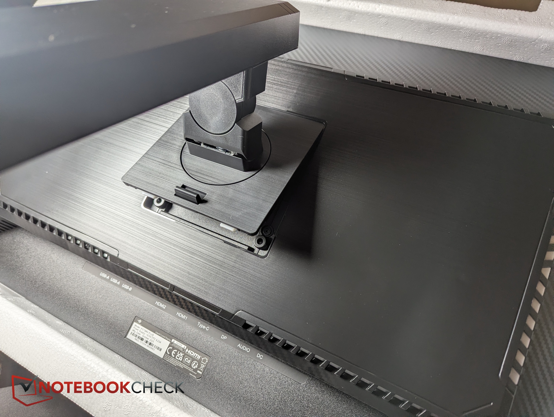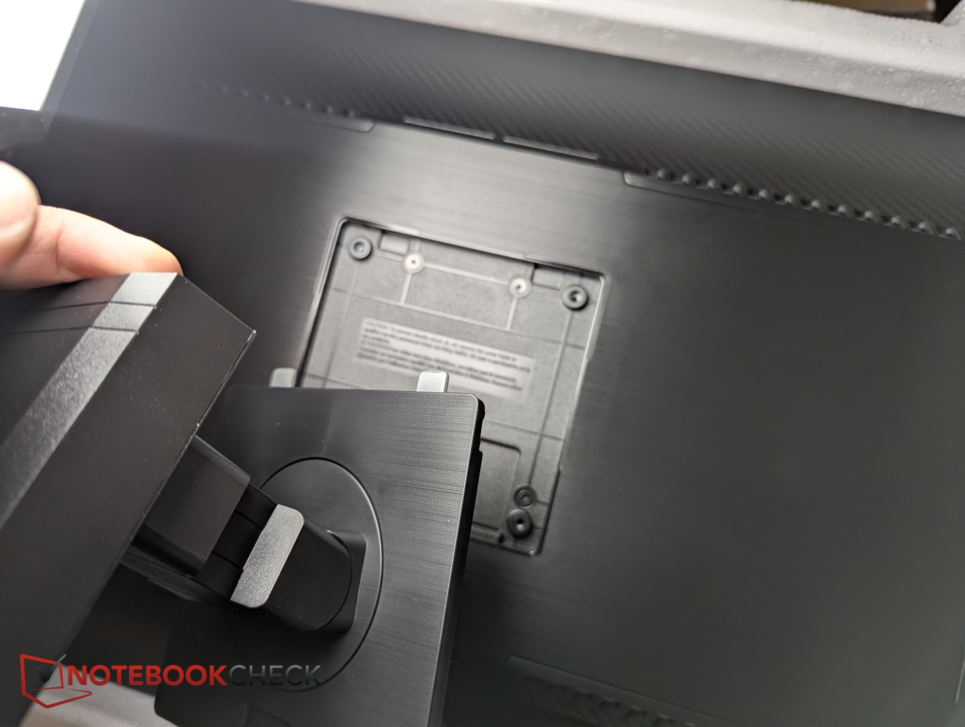 Der Aufbau ist denkbar einfach. Der Standfuß wird schlicht in die Vesa-Halterung des Bildschirms eingeklickt, Schrauben ist nicht notwendig. Vorher muss der Fuß an den Ständer montiert werden, hier verbindet man beide Teile durch die integrierte Flügelschraube.