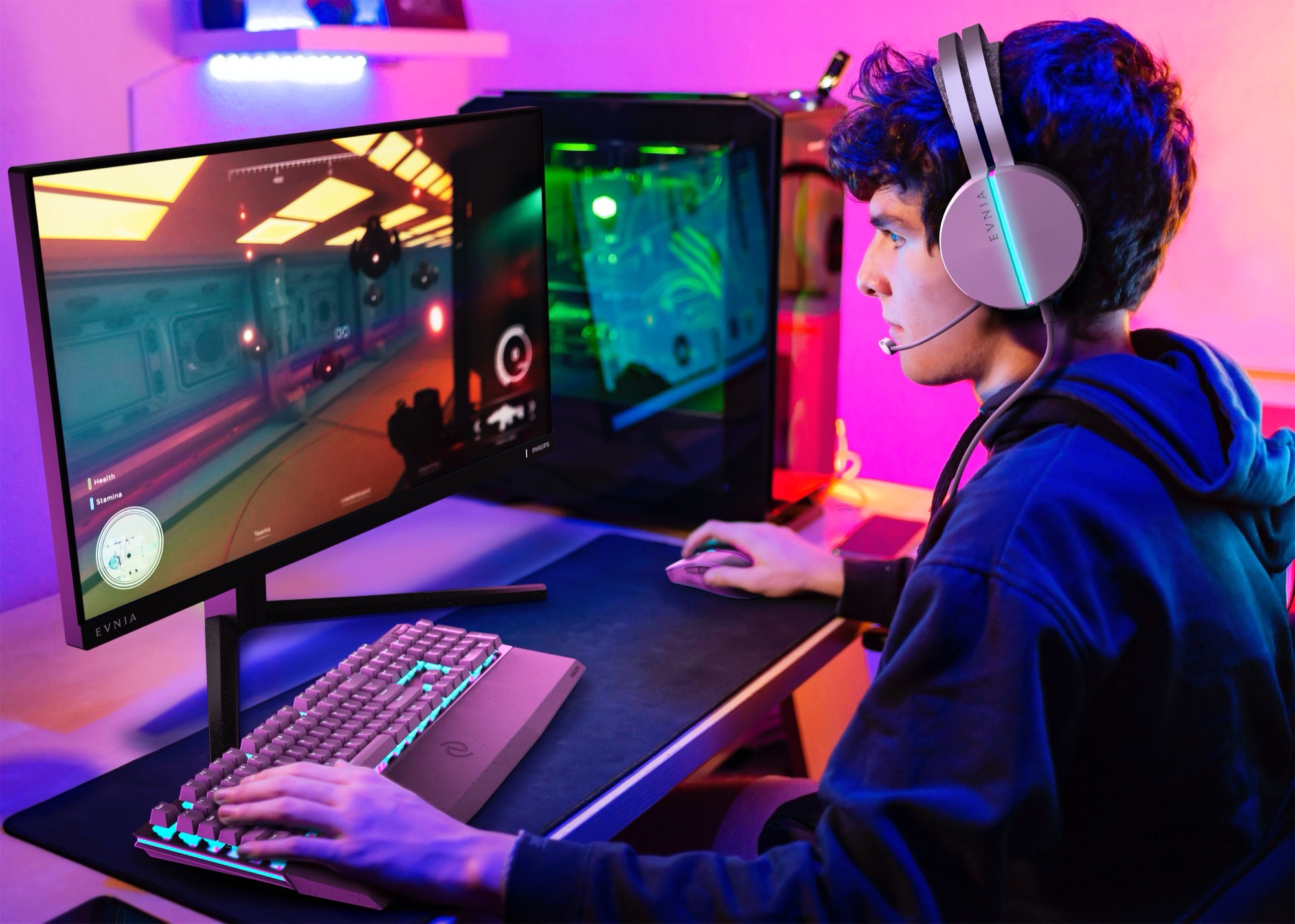 Das 27 Zoll IPS-Panel erreicht wahlweise volle 4K-Auflösung bei einer Bildfrequenz von 160 Hz, oder aber eine Auflösung von 1.920 x 1.080 Pixel mit einer Bildrate von 320 Hz. Laut Philips erreicht der Monitor so eine Reaktionszeit von nur 0,5 Millisekunden. Auch abseits der hohen Geschwindigkeit soll der Evnia 27M2N3800A eine gute Bildqualität erzielen, denn das IPS-Panel kann den DCI-P3-Farbraum zu 95 Prozent darstellen, den sRGB-Farbraum zu 130 Prozent, NTSC zu 110 Prozent und Adobe RGB zu 90 Prozent.