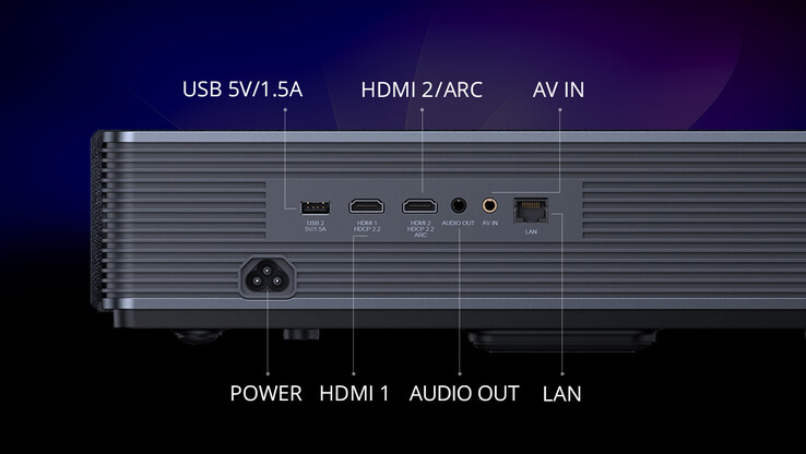 Zu den weiteren Merkmalen des Laser TV LT002 zählen unter anderem eine Bildwiederholfrequenz von 60 Hz, eine Reaktionszeit von 50 ms sowie die MEMC-Technologie zur Bewegungsglättung. Ebenfalls verbaut sind Stereo-Lautsprecher mit zusammen 50 Watt, Dolby Digital Plus und DTS. Als Anschlüsse stehen unter anderem zweimal HDMI (mit ARC), USB und LAN zur Verfügung.