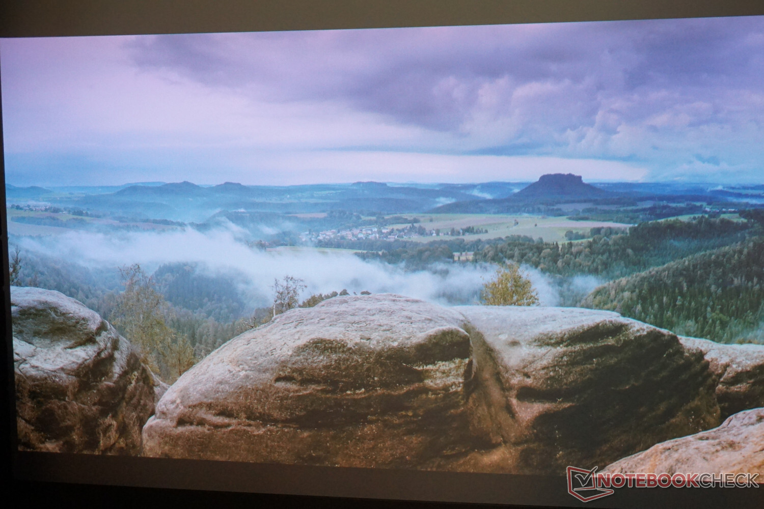 Insgesamt ergeben sich so auch auf großer Diagonale und bei kleinem Abstand zur Leinwand von 2 m brillante Bilder. Hochauflösende Fotos sehen sehr gut aus und offenbaren allein durch die schiere Größe mehr Details.