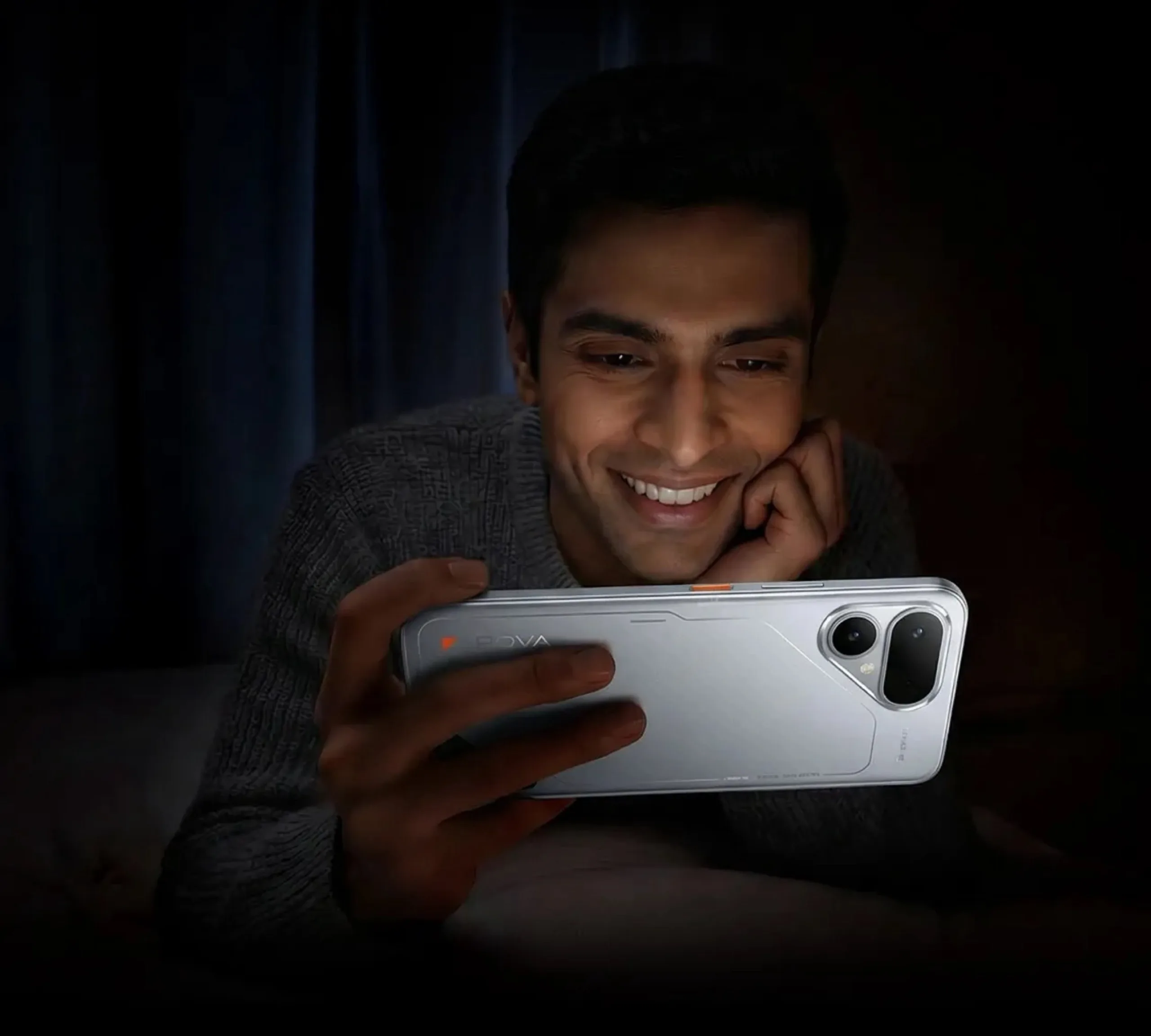 Stattdessen rundet Tecno sowohl das Display als auch die Rückseite zur linken und rechten Seite hin ab, das Kameramodul wird dreieckig ausgeführt, ein transparentes Dreieck an der unteren rechten Ecke der Rückseite dient als kleines Design-Highlight. Die Ausstattung entspricht ansonsten einem herkömmlichen Mittelklasse-Smartphone. Denn Tecno verbaut ein 6,78 Zoll großes AMOLED-Panel, das eine Bildfrequenz von 144 Hz und eine HDR-Spitzenhelligkeit von 4.500 Nits erreicht. Das Display wird durch Gorilla Glass 7i vor Kratzern geschützt.