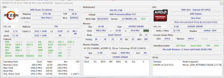 | MSI Claw A8 BZ2EM AMD Ryzen Z2 Extreme ⎘ AMD Radeon 890M ⎘ 24 GB RAM, 1024 GB SSD | Amazon: Bestpreis 929.71€ Jacob Elektronik direkt 2. 937.52€ Jacob Elektronik direkt (AT) 3. 989.15€ e-tec.at | 765 g | 24 mm | 8.00" 1920x1200 283 PPI IPS | |