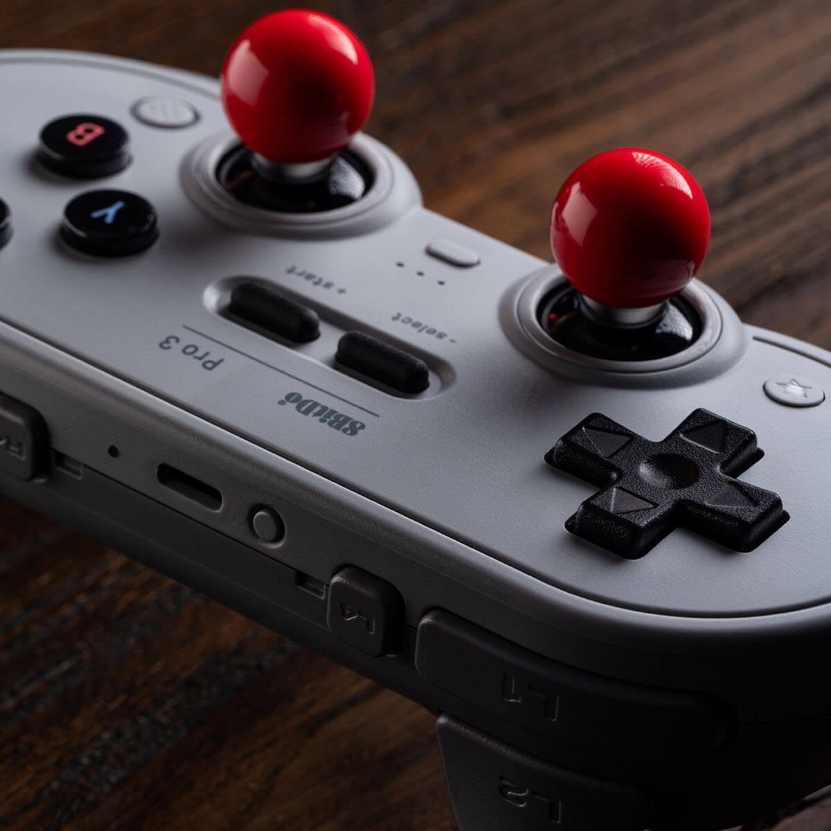 Die Aktionstasten halten magnetisch und lassen sich zwischen Xbox- und Switch-Layout austauschen. 8BitDo nutzt dabei moderne Technik gleich an mehreren Stellen: So kommt der 8BitDo Pro 3 mit TMR-Joysticks, welche sich durch eine hohe Sensitivität, größere Präzision und auch niedrigere Leistungsaufnahme auszeichnen sollen. Die Trigger nutzen den Hall-Effekt, deren Auslöseweg lässt sich noch erheblich verkürzen, dann sollen diese ein taktiles Feedback bieten. Für die Joysticks gibt es sogar noch Kugel-Aufsätze, dann erinnern diese eher an auf Arcade-Controllern vorhandenen Joysticks.