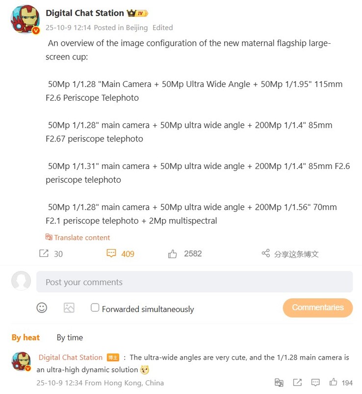 Das Rätsel lässt sich allerdings recht leicht lösen, wenn wir die Leaks der letzten Wochen Revue passieren lassen. Beim Specs-Vergleich nicht im Detail berücksichtigt wird einerseits das 50 Megapixel Ultraweitwinkel, das in allen Fällen recht "niedlich" ist, wie in einem Kommentar zu lesen ist. Ebenfalls unberücksichtigt bleibt natürlich der individuelle Stil der Fotos, der ja mittlerweile zunehmend von den Kamera-Partnern von Xiaomi, Vivo, Oppo und bald auch Realme geprägt wird, also Leica, Zeiss, Hasselblad und Ricoh GR. Wer die Specs den Kamera-Flaggschiffen selbst zuordnen will, hat jetzt noch Gelegenheit dazu, bevor wir unter dem Screenshot aufklären.