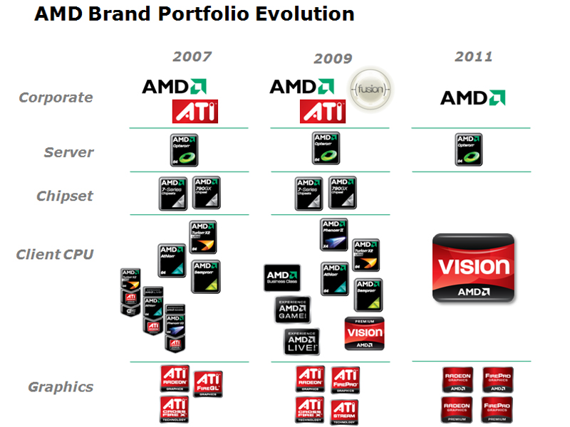 Für mobile Geräte wird es ab jetzt nur noch das einheitliche „AMD Vision“-Logo geben, das für Geräte auf AMD-Basis vorgesehen ist. Insgesamt soll so das Portfolio von AMD übersichtlicher gestaltet werden.