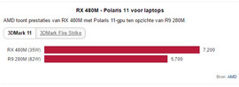 Interessanter für uns Notebook-User sind ja immer die mobilen Versionen der jeweiligen Architekturen. Auch diesbezüglich gab es von AMD erste Informationen. WCCFTech meldet eine mit 35 Watt äußerst niedrige TDP für die Radeon RX 480M Notebook-GPU, die erste auf Basis der Polaris 11-Architektur mit 16 Compute Units. Der 14nm FinFET-Prozess zahlt sich offenbar aus! In ersten Benchmark-Ergebnissen erzielte der Chip 4.070 Punkte in 3DMark Firestrike und 7.200 Punkte in 3DMark 11. Notebooks mit diesem Chip wurden bislang noch nicht angekündigt. Mehr Details gibt es auf der immer aktualisierten Benchmarkseite der Radeon RX 480M (früher als R9 M480 bekannt).