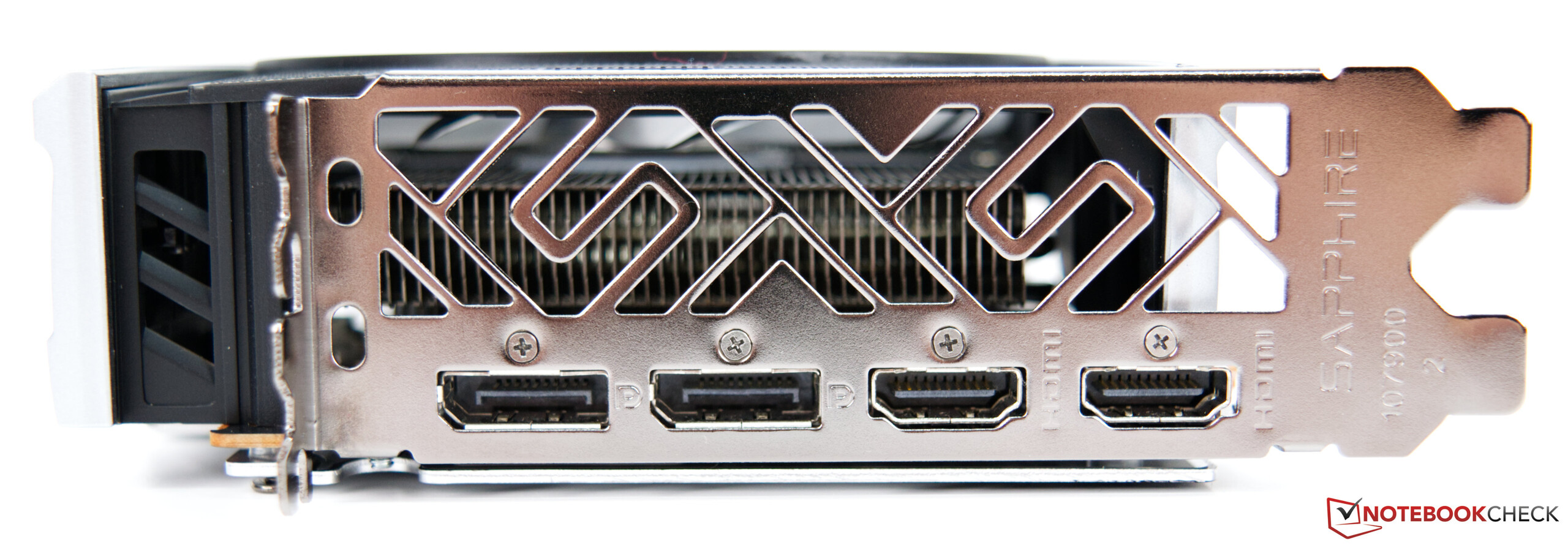 Unser Testsample bietet extern die Möglichkeit Bildschirme über HDMI (2.0b) oder DisplayPort (1.4) anzuschließen. Jeweils zwei Ausgänge finden wir bei der Sapphire Nitro+ Radeon RX 5500 XT. Intern verlangt dieses Modell nach einem 8-Pin-Stromanschluss.