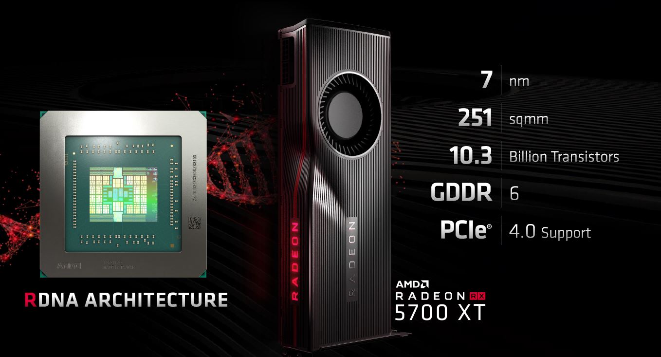 RDNA dient als Basis für den Navi 10 getauften Grafikchip und löst damit die GCN-Architektur der älteren Grafikkarten ab. Als weltweit erste Grafikkarte unterstützt die Radeon RX-5700-Serie PCI Express 4.0. RIS (Radeon Image Sharpening) bietet den Nutzern die Möglichkeit einer detaillierteren Darstellung ohne großen Leistungsverlust. Mit der neuen Media Engine lassen sich nun Videos mit einer Auflösung von bis zu 8K dekodieren und die neue Display Engine unterstützt Bildschirme mit bis zu 8K bei 60Hz inklusive HDR oder 4K HDR mit 144Hz.