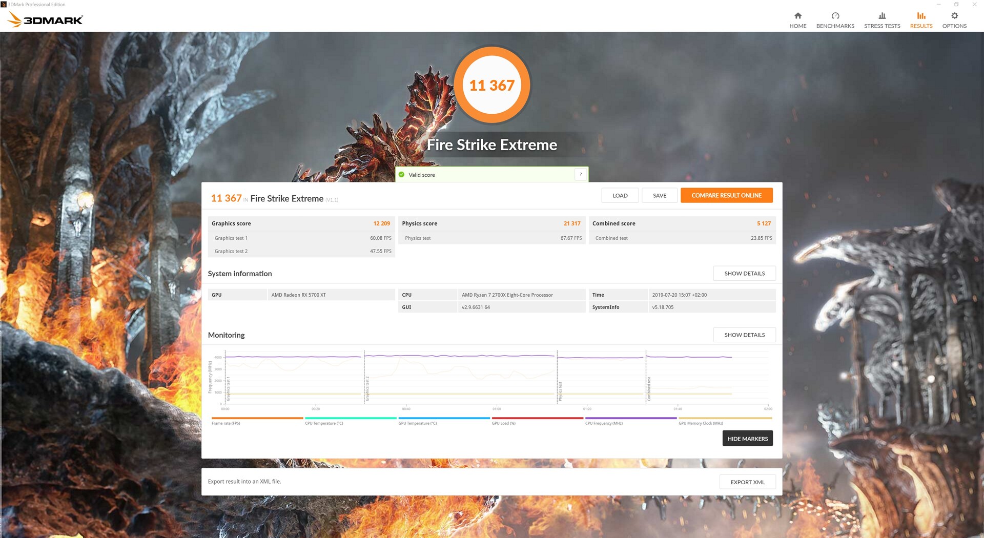 | 3DMark Fire Strike Extreme Score | 11367 Punkte | |
