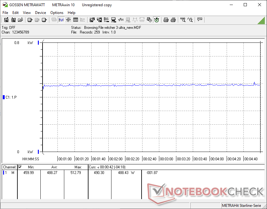 Im FurMark- und The-Witcher-3-Ultra-Stresstests verbraucht das System mit RX 6900 XT im Schnitt 456,8 W bzw. 488 W. Der Verbrauch im FurMark-Stress spiegelt dabei auch die zuvor beobachteten Taktrateneinbrüche wieder.