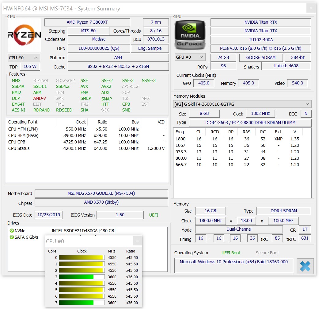 | Intel Core i9-9900KS, Nvidia Titan RTX | |
