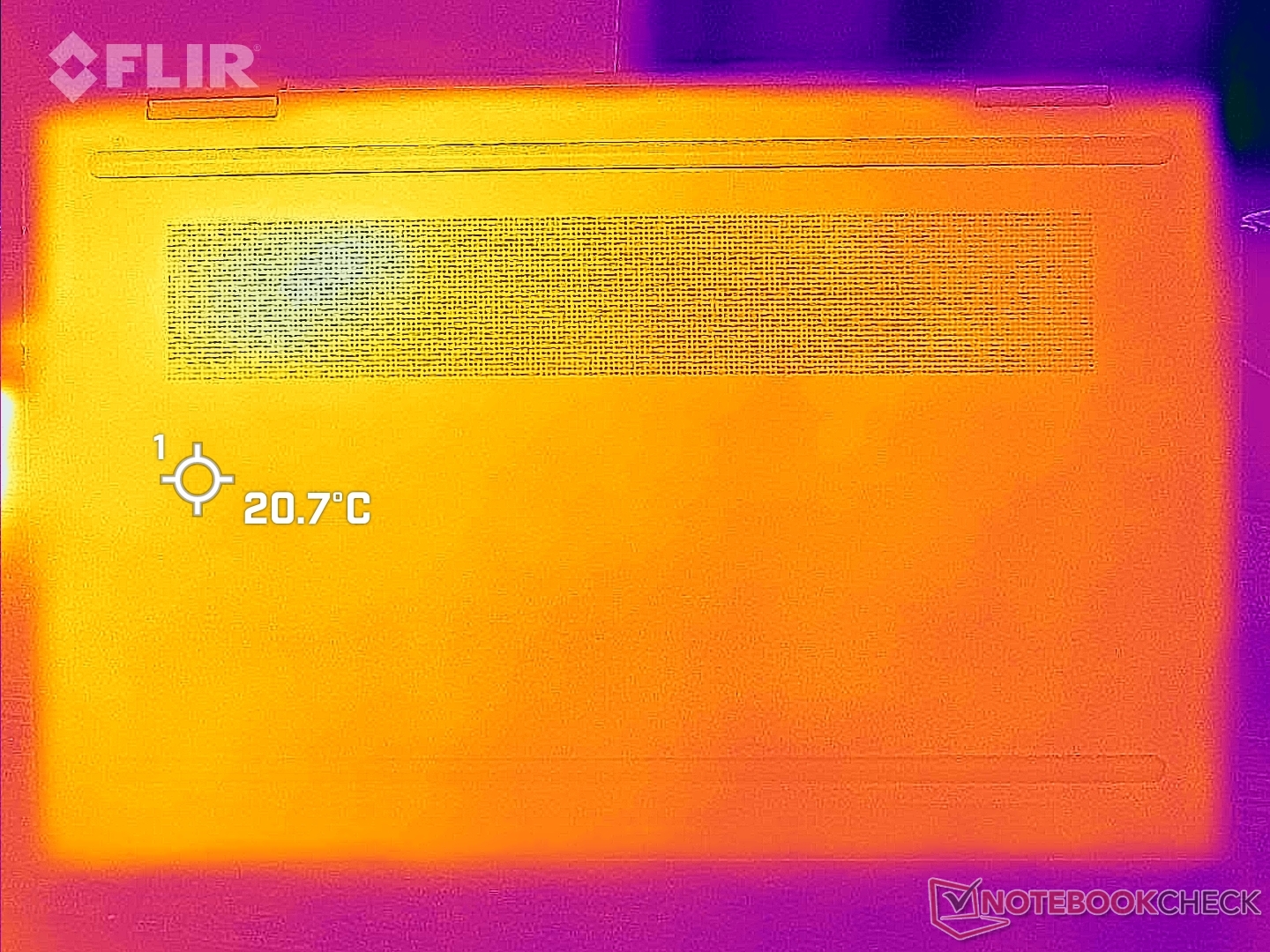 (+) Die Handballen und der Touchpad-Bereich sind mit gemessenen 27.6 °C kühler als die typische Hauttemperatur und fühlen sich dadurch kühl an.