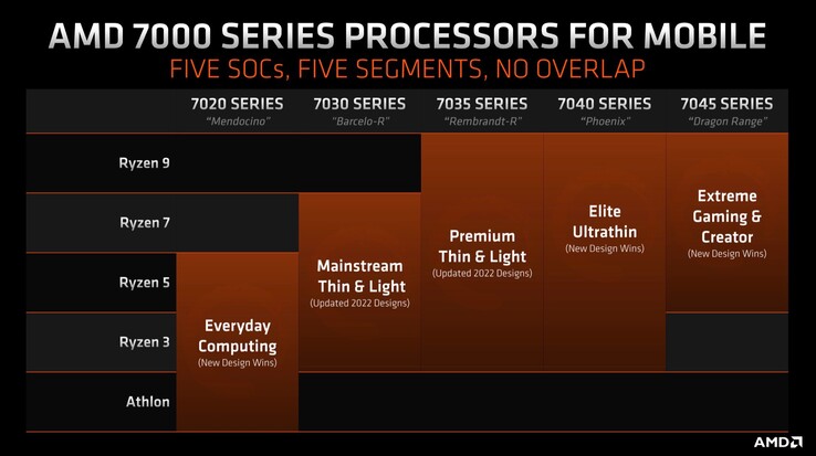 Der wohl größte Vorteil dieser neuen Bezeichnungen ist, dass direkt Auskunft über die Zen-Architektur gegeben wird. Nachdem das AMD Ryzen 7000 CPU-Portfolio Chips auf Basis von Zen 2 (Mendocino), Zen 3 (Rembrandt) und Zen 4 (Phoenix) enthält, ist diese Angabe essenziell. Die Leistungsklassen werden weiterhin in HX (55W), HS (35W) und U (15W) unterteilt, die "H"-Klasse mit einer TDP von 45 Watt wird eingestellt. Neu ist die Endung "e", die APUs mit einer TDP von 9 Watt kennzeichnet.