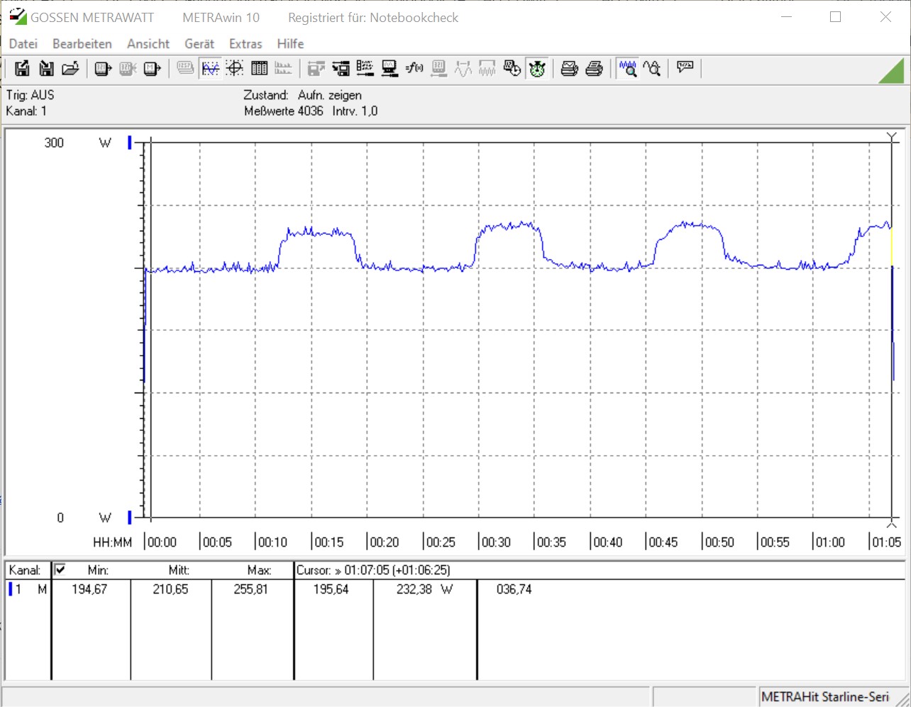 Hinweis: Bei den ermittelten Energieverbräuchen wurde immer das gesamte Testsystem ohne Monitor betrachtet.