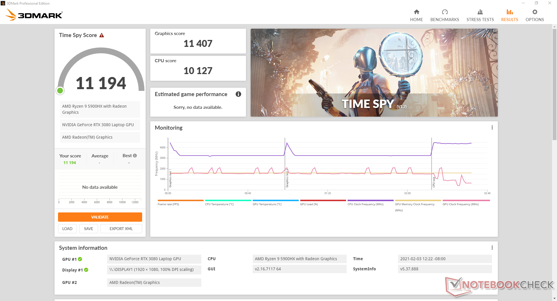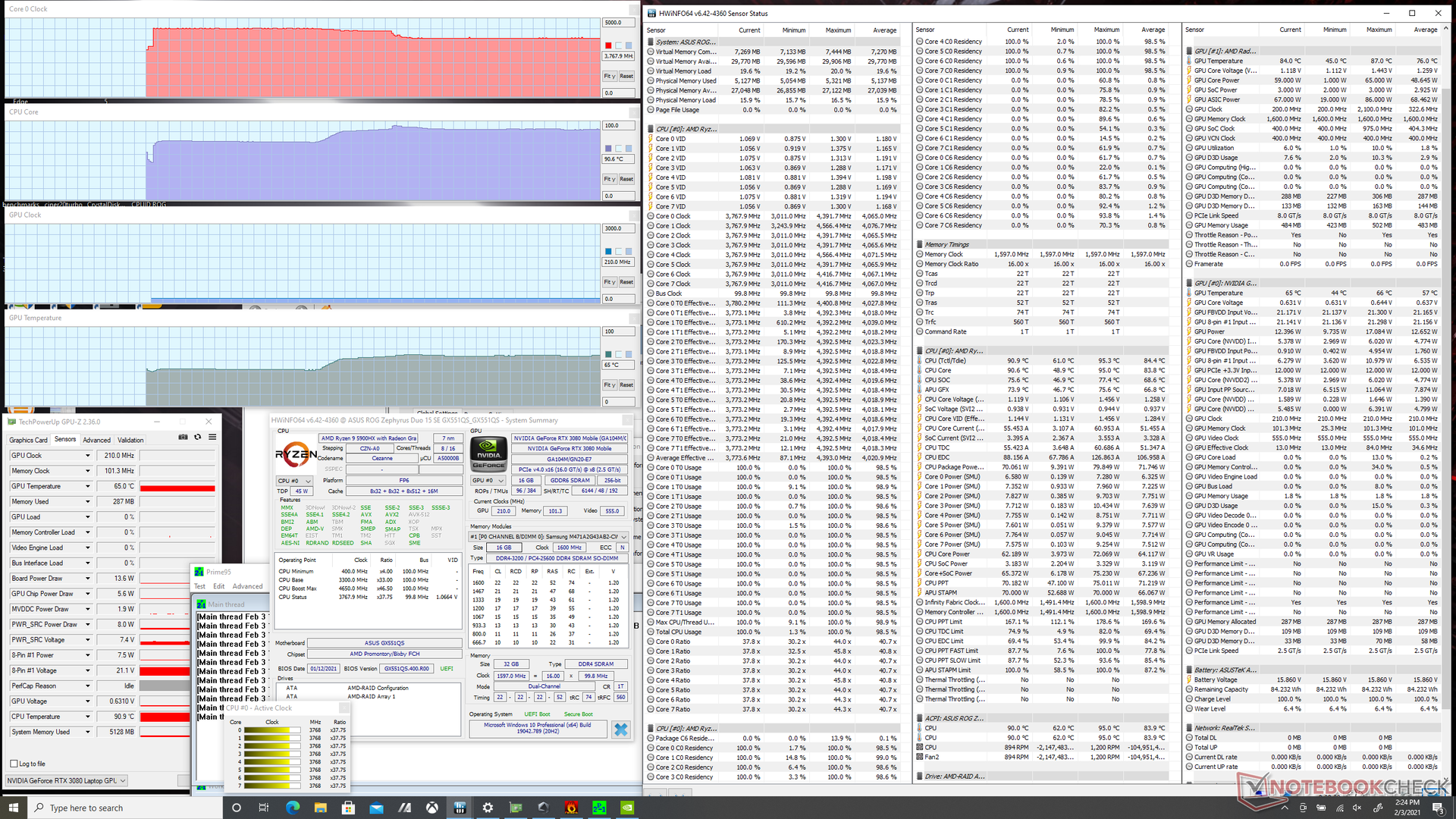 The Witcher 3 auszuführen resultiert in einem Verbrauch von 181 W, also 20 % mehr als beim GX550 aus dem letzten Jahr. Der Grafikleistungsschub ist jedoch viel höher, weshalb das neuere GX551 in Bezug auf die Leistung-pro-Watt immer noch die Nase vorn hat. Das wird beim Vergleichen der CPU-Leistung noch deutlicher, da der Ryzen-9-5900HX trotz der massiven TDP-Diskrepanz nur innerhalb von 10 % des Core i9-10900K liegt.