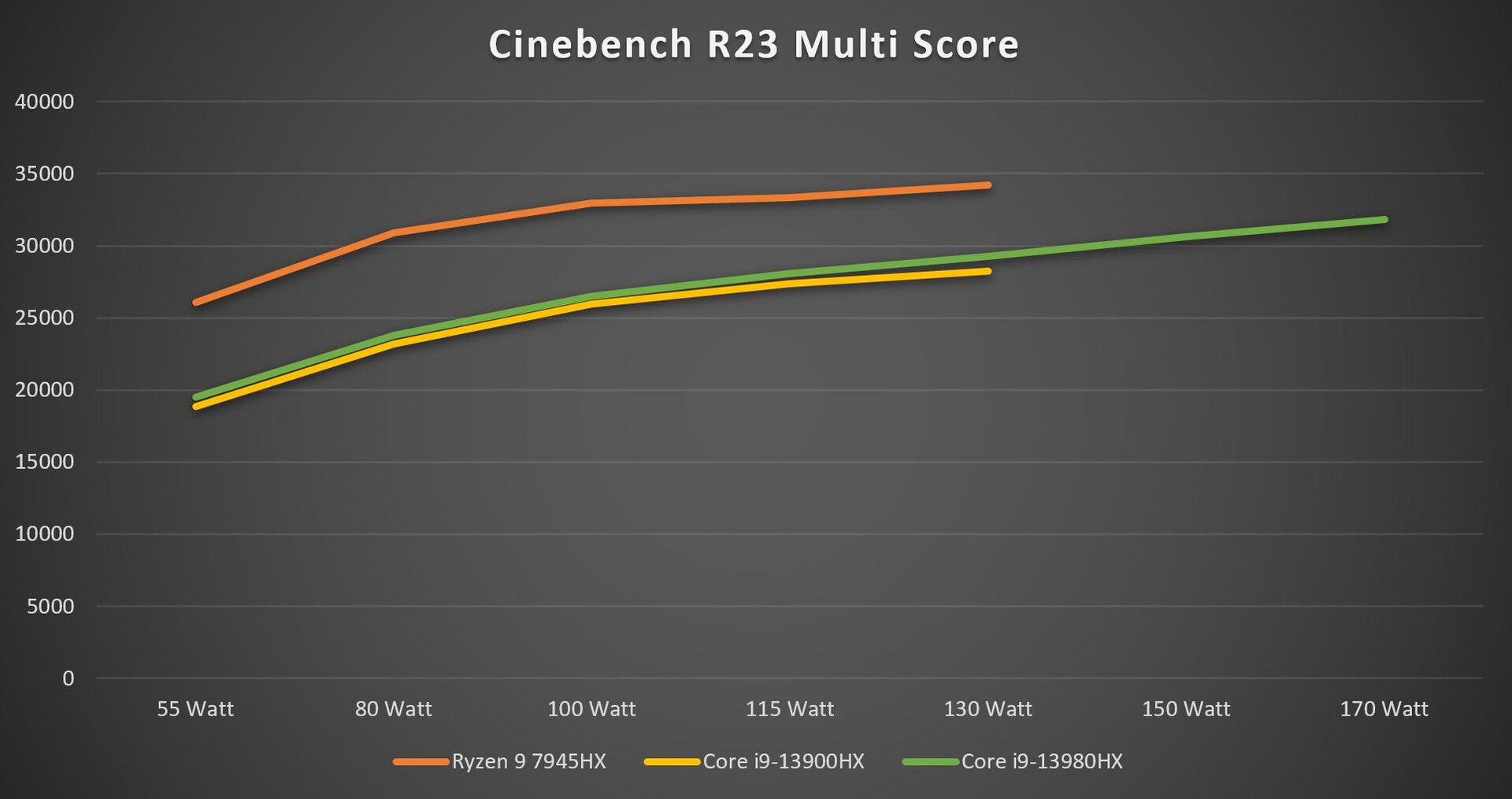 | Power Limit | Core i9-13900HX | Core i9-13950HX | Core i9-13980HX | Ryzen 9 7945HX |