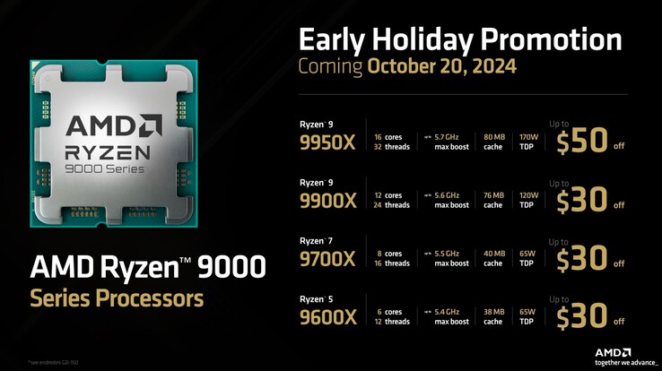 - AMD Ryzen 9 9950X: 599 US-Dollar (–50 USD)