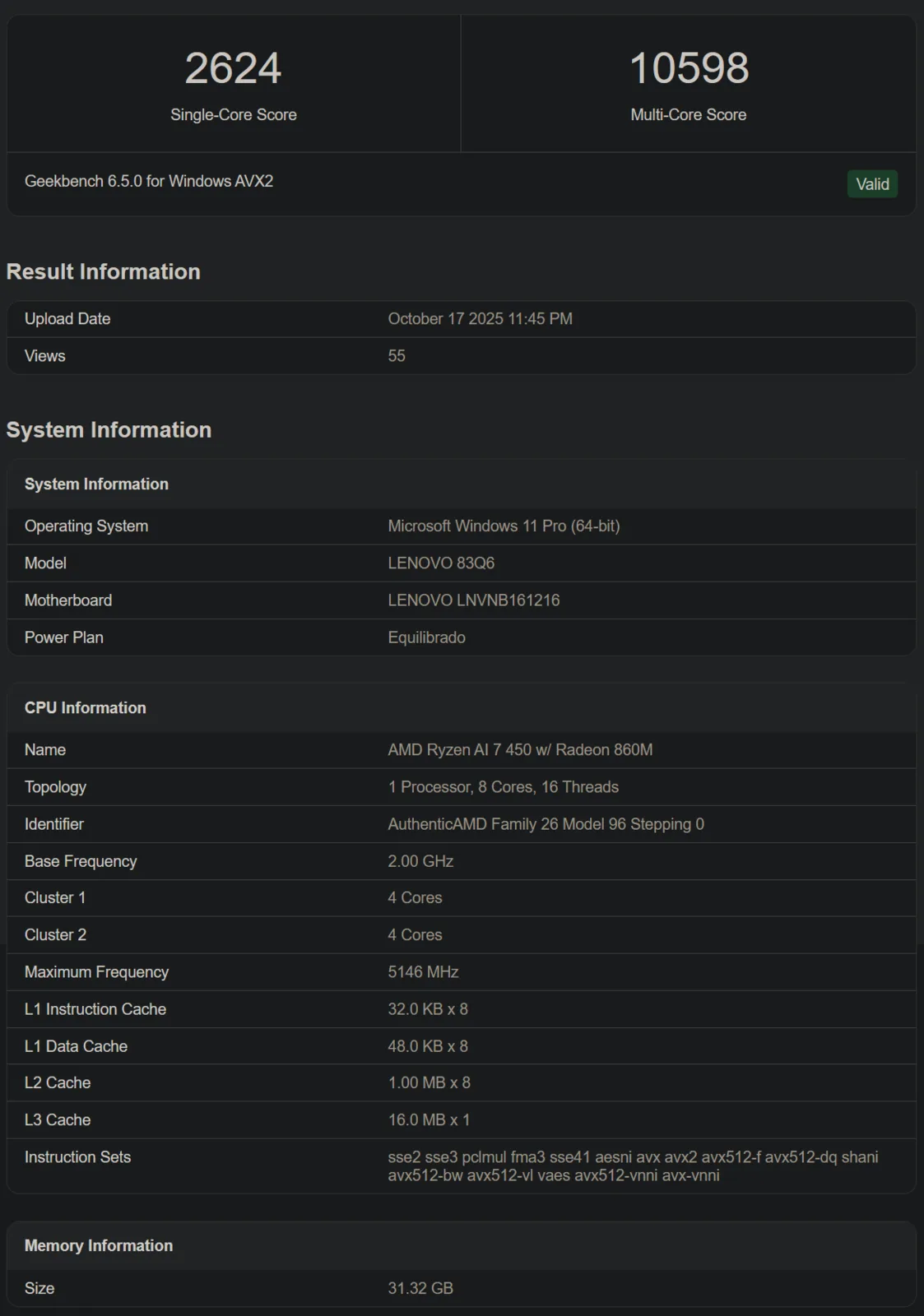 Der Ryzen AI 7 450 schneidet leider ebenfalls nicht besser ab: Er erreicht 2.624 Punkte im Single-Core- und 10.598 Punkte im Multi-Core-Test. Zum Vergleich: Der Ryzen AI 7 350 kommt im Durchschnitt auf 2.853 bzw. 13.092 Punkte. Der neue Chip wurde im selben oben erwähnten Lenovo-Laptop mit 32 GB Arbeitsspeicher gesichtet. Laut Spezifikationen bleibt es beim 4+4-Layout, wobei der Zen-5-Cluster auf bis zu 5,14 GHz boostet.