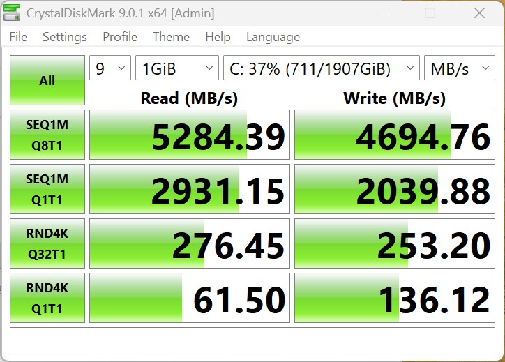 | Connectivity - USB 3.x / USB4 / TB - AS SSD Seq Read Test (1GB) | |