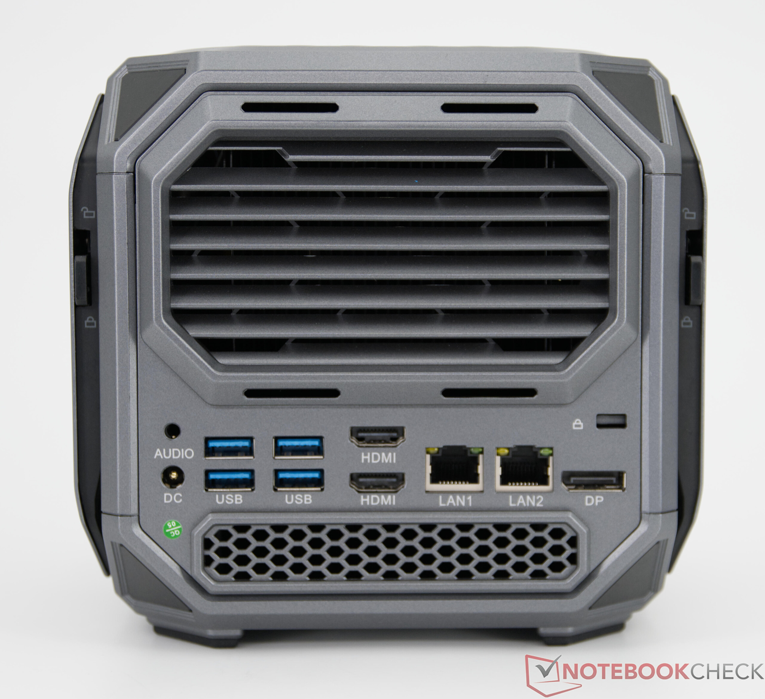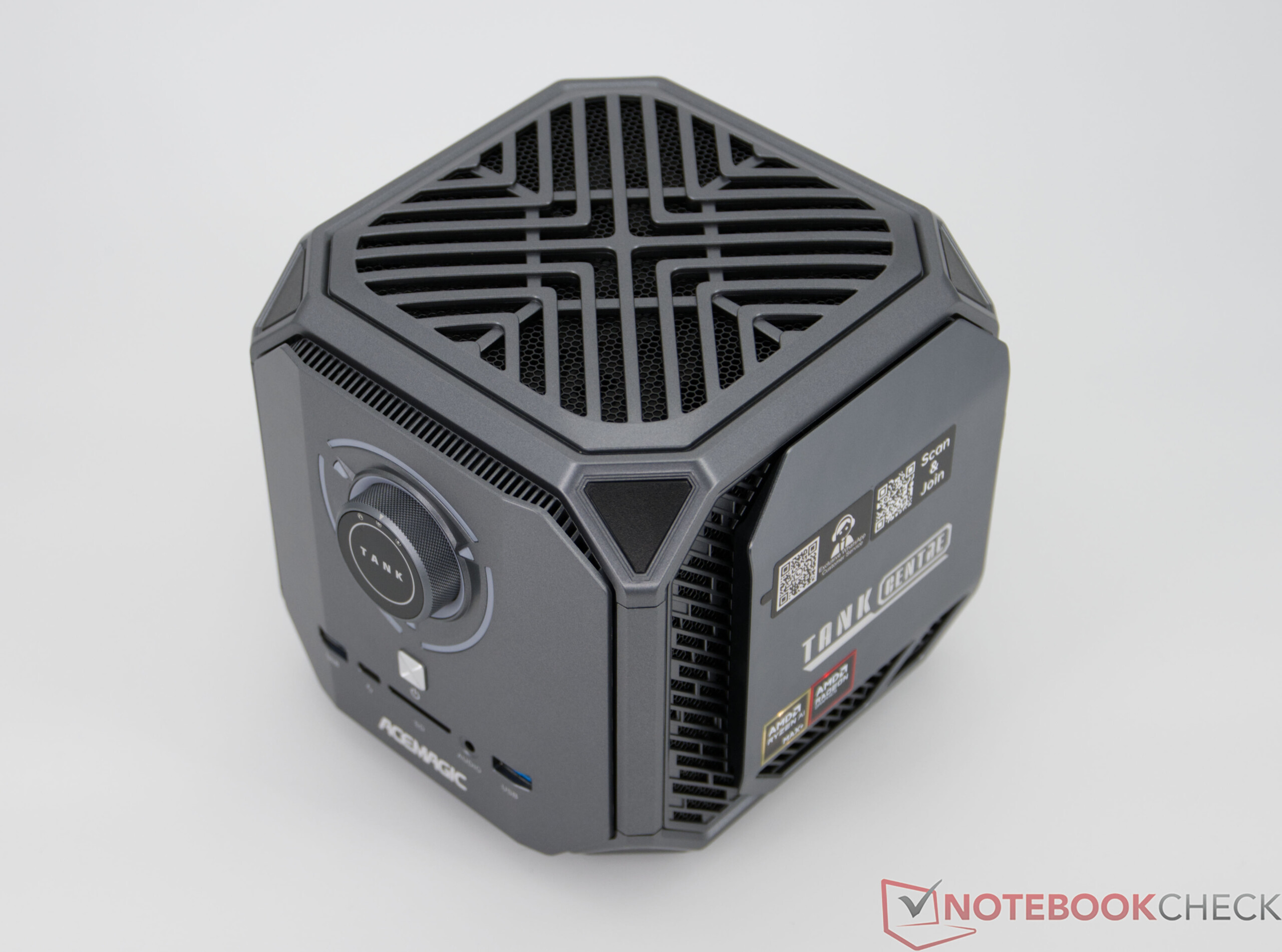 Wie das frühere Modell, der Acemagic Tank 03, nutzt der Acemagic M1A Pro+ optisch das gleiche Design, welches unter der Seitenabdeckung einige Änderungen aufweist. Erhalten bleibt zudem das charakteristische Bedienelement an der Front: Über den integrierten Drehregler lässt sich bequem zwischen mehreren Leistungsmodi (70 Watt, 100 Watt und 140 Watt) wechseln. Materialien und Verarbeitung gleichen dem Tank 03, auf den wir an dieser Stelle verweisen.