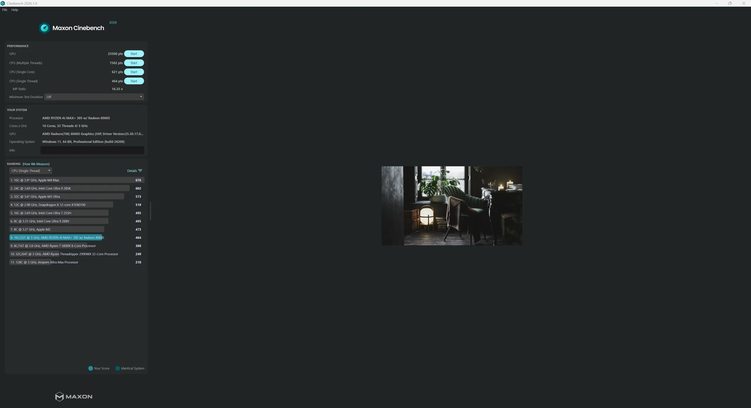 | Power Mode | Cinebench R15 1T | Cinebench R15 nT | Cinebench R20 1T | Cinebench R20 nT | Cinebench R23 1T | Cinebench R23 nT | Cinebench 2024 1T | Cinebench 2024 nT | Cinebench 2026 1T | Cinebench 2026 nT |