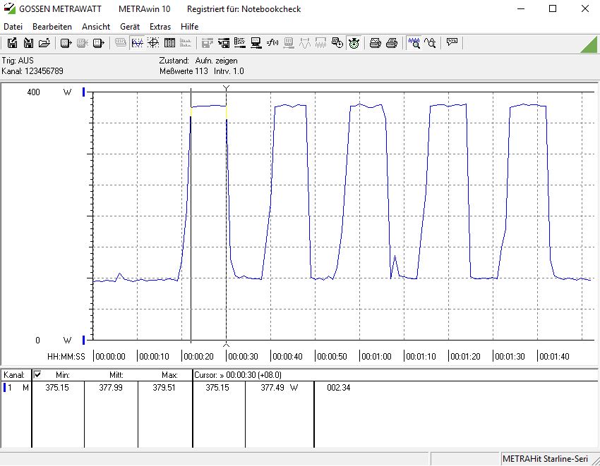 Die hier ermittelten Werte beziehen sich auf das Testsystem (ohne Bildschirm) inklusive Grafikkarte und der Flüssigkeitskühlung von Enermax (Liqtech TR4 240).