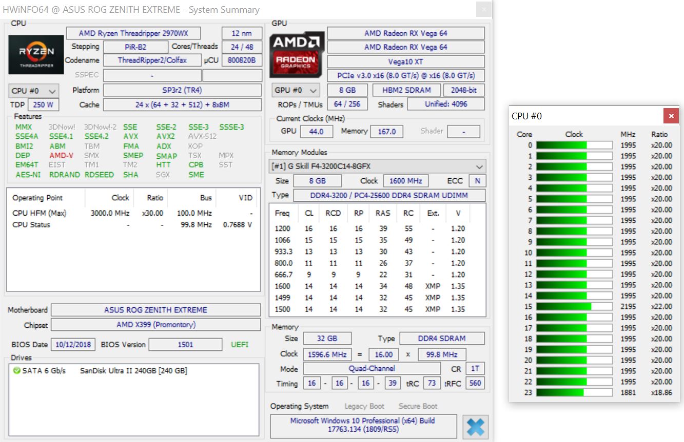 - Asus ROG Zenith Extreme (BIOS 1501, Default Settings, XMP 1 für DDR4-3200)