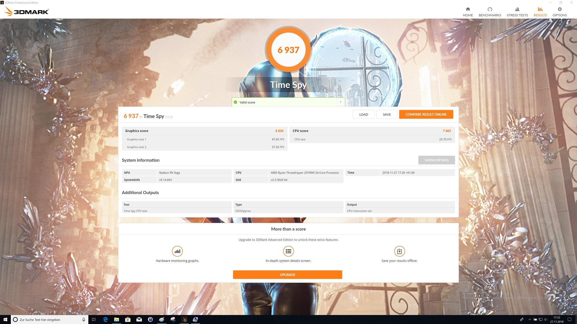 | 3DMark Time Spy Score | 6937 Punkte | |