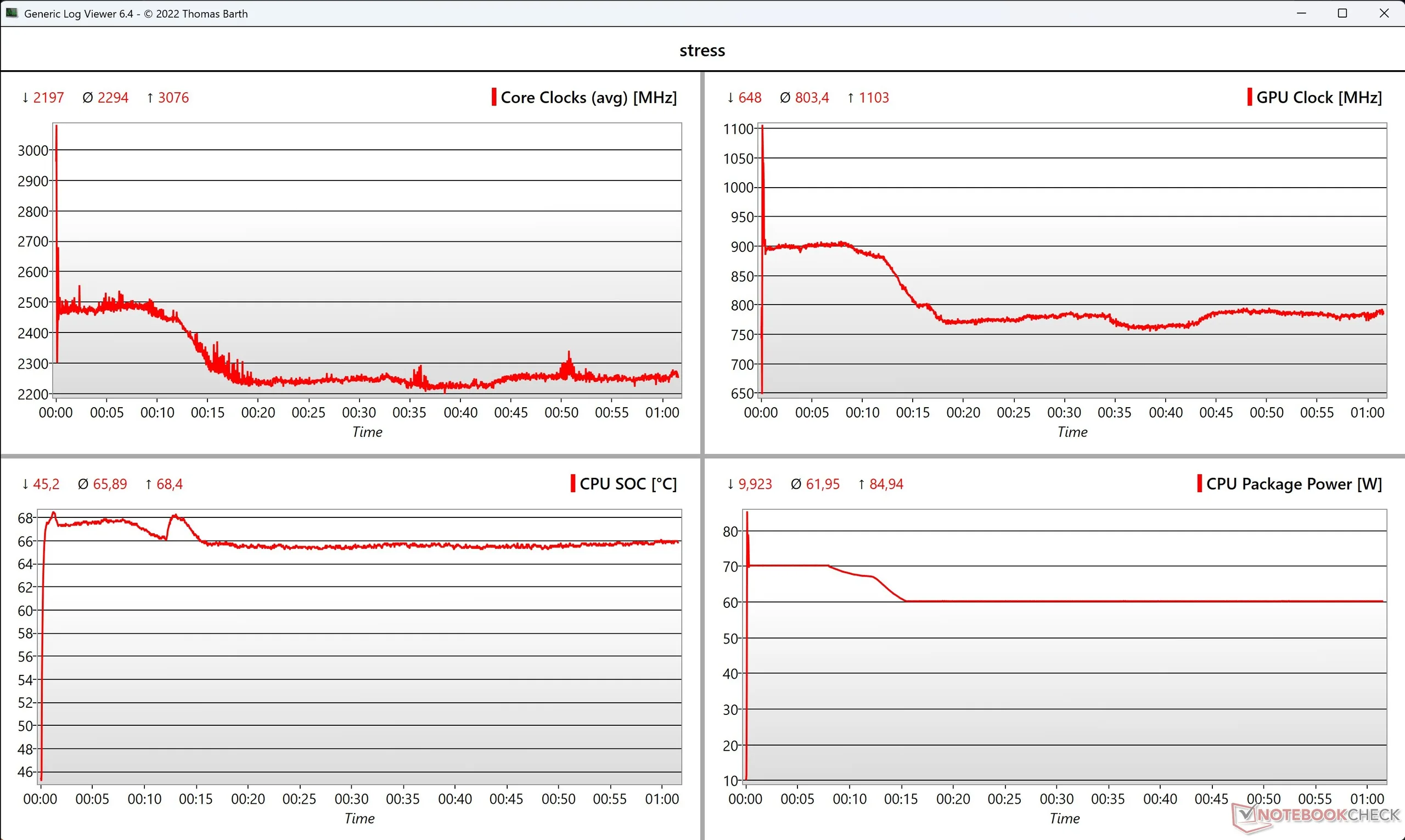 Die Akkulaufzeit liegt unverändert bei 73 Wh und die ermittelten Laufzeiten sind etwas besser als beim alten PX13. Bei 150 cd/m² läuft unser WLAN-Test für fast 9,5 Stunden, was von anderen Geräten deutlich überboten wird. Bei voller SDR-Helligkeit liegt die Laufzeit bei rund 7,5 Stunden.
