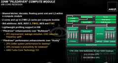 So integriert AMDs in 32-nm-Fertigung hergestellte APU Trinity auf einer Die-Fläche von 264 mm² 1,3 Milliarden Transistoren. Trinity nutzt "Bulldozer"-Cores der 2. Generation mit Codenamen "Piledriver" und kommt in unterschiedlichen Konfigurationen. AMDs Trinity APU unterstützt bis zu vier Rechenkerne, 4 MByte L2-Cache, Turbo Core 3.0 sowie bei den Notebook-APUs Speicher bis DDR3-1600 (Low Power, 1,25 Volt).