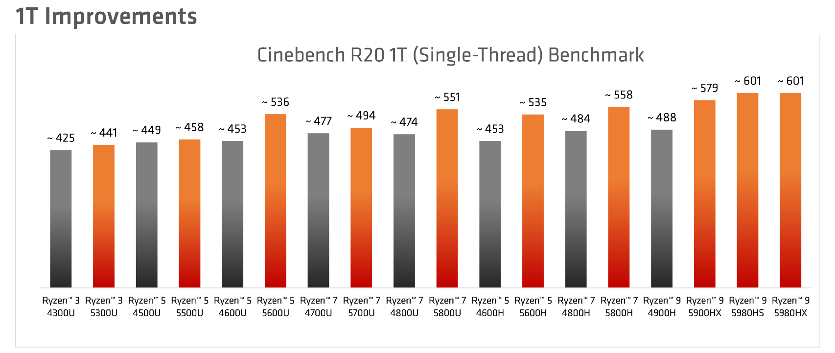 Und so gibt AMD an, dass der Ryzen 3 5300U eine bessere Multi-Core-Leistung bietet als ein Core i7-1165G7 und das obwohl es heißt, dass die gesamte H-Serie den Ryzen Threadripper 1900X der ersten Generation im Cinebench R20 schlägt.