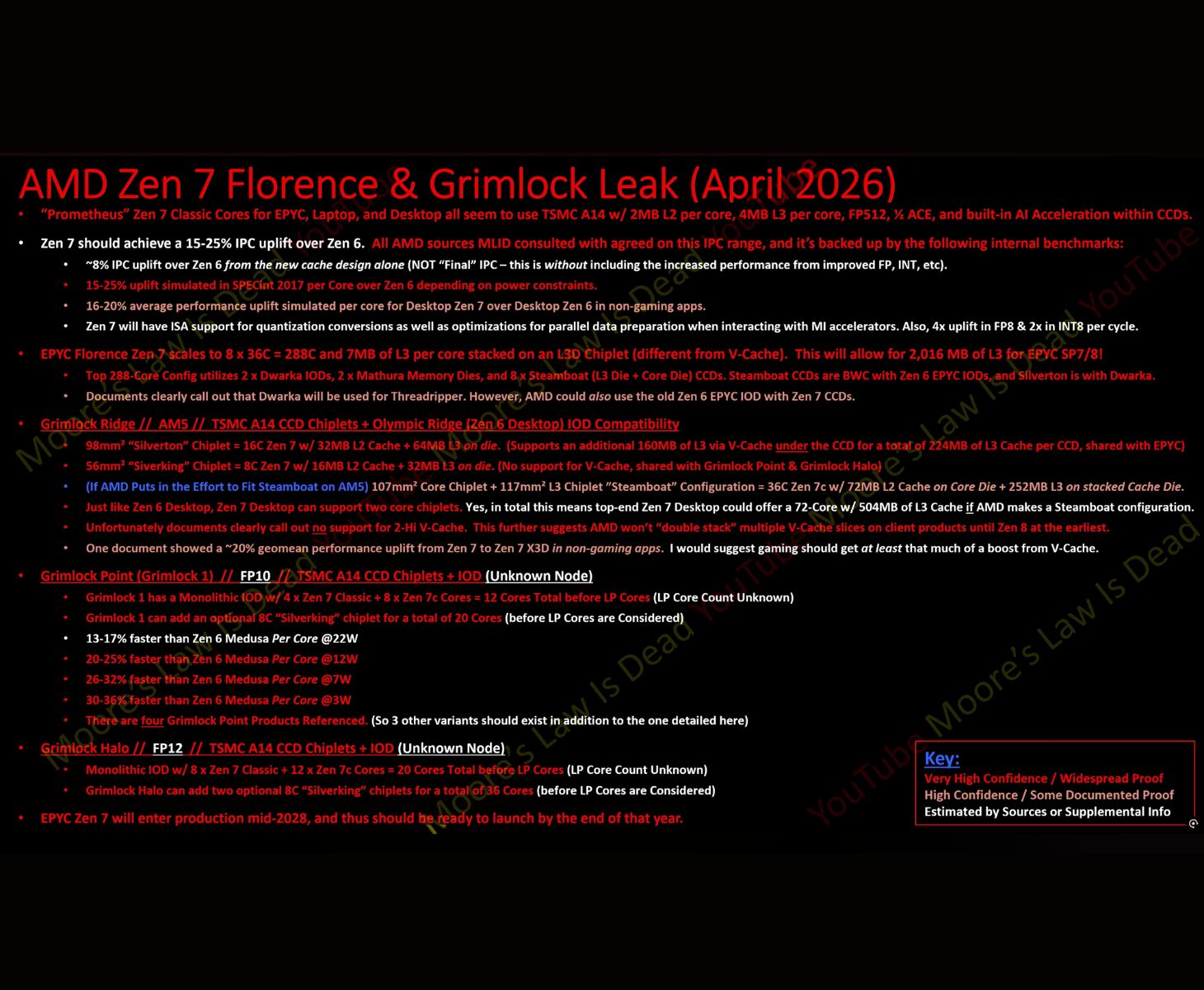 Der YouTuber vermutet, dass die ähnliche Breite des 36-Kern-Steamboat-CCDs im Vergleich zum 16-Kern-Silverton es AMD theoretisch erlauben könnte, zwei Steamboat-CCDs auf AM5 unterzubringen, was in einem Desktop-Chip mit 72 Kernen resultieren würde. Eine geleakte Slide bestätigt ein solches Produkt allerdings nicht. Der Leaker selbst geht davon aus, dass ein derartiger Chip eher für Embedded-Kunden als für den DIY-Markt gedacht wäre.