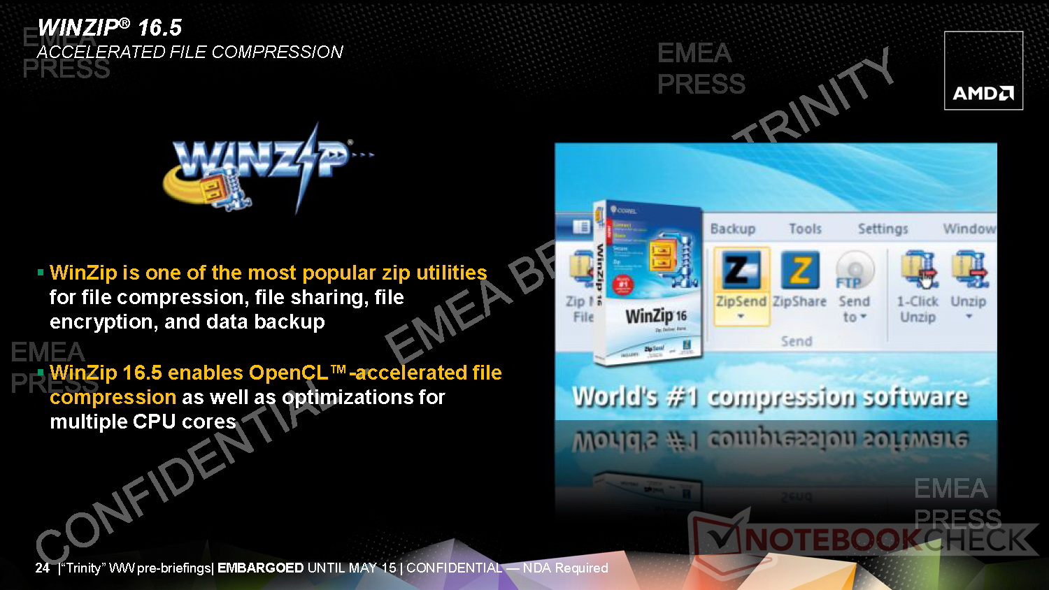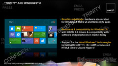 Gleiches gilt gemäß AMD auch für die Leistung von Trinity unter Microsofts OS Windows 8, sowie im Zusammenspiel mit zahlreichen Applikationen und Software wie dem ZIP-Dienstprogramm Winzip, der Videosoftware Motiondsp vReveal 3 und Adobes Software für Bildbearbeitung Photoshop CS6.