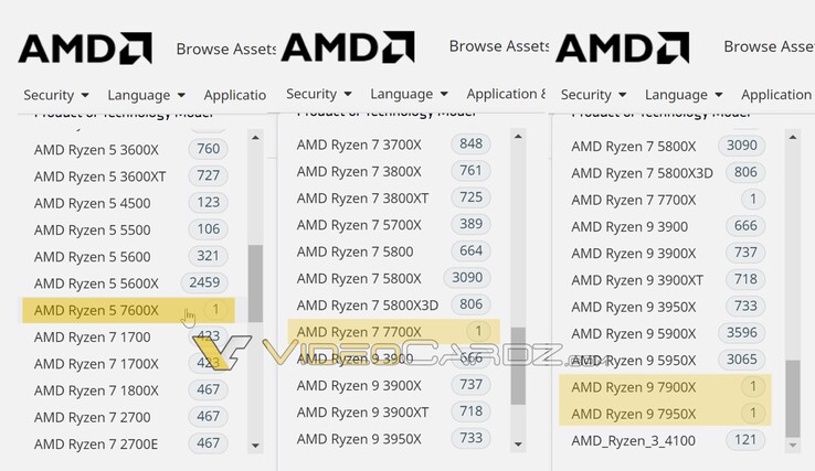 AMD hat in seiner öffentlich zugänglichen CPU-Datenbank bereits vier Ryzen 7000-Prozessoren gelistet, die von VideoCardz entdeckt wurden. Damit hat AMD offiziell bestätigt, dass das CPU-Portfolio künftig den Ryzen 9 7950X, den Ryzen 9 7900X, den Ryzen 7 7700X und den Ryzen 5 7600X beinhalten wird.