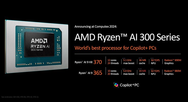 AMD Ryzen AI 300 startet als Nachfolger von Ryzen 8040 – die Änderung des Namens-Schemas hat AMD bereits ausführlich erklärt. Zum Start bietet AMD nur zwei Prozessoren der Ryzen AI 300-Serie an, die beide auf der neuen Zen 5-Architektur basieren, die eine 16 Prozent bessere Performance als Zen 4 bei identischen Taktfrequenzen erzielen soll.