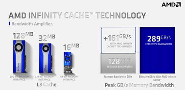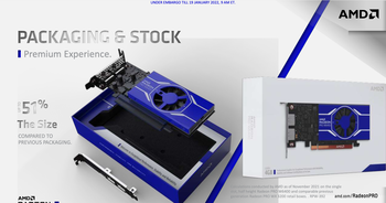 AMD verbaut zwei DisplayPorts in voller Größe, die jeweils einen 4K-Monitor unterstützen. Nvidia bietet stattdessen vier Mini-DisplayPorts, allerdings betont AMD, dass rund 83 Prozent aller professionellen Anwender nicht mehr als zwei Displays verwenden. Die Mittelklasse-Grafikkarte ist mit 4 GB GDDR6-Grafikspeicher ausgestattet, der eine Bandbreite von bis zu 128 GB/s erreicht, in Verbindung mit 16 MB Infinity Cache spricht AMD aber von einer effektiven Bandbreite von 289 GB/s.